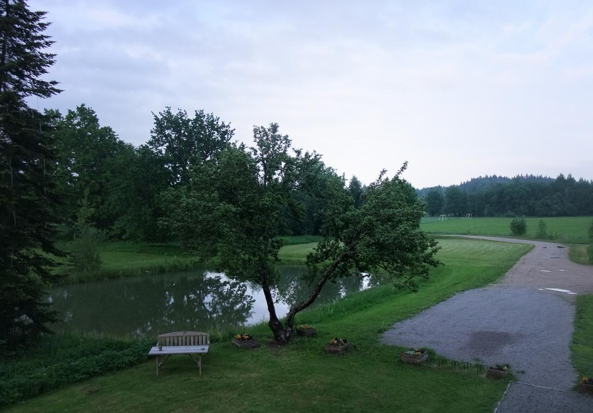 Перед служебным флигелем сохранился копанный пруд, использовавшийся в старину для хозяйственных нужд.