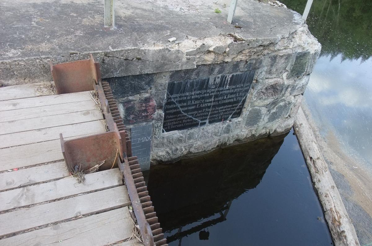 О временах строительства электростанции напоминает плита, вмурованная в основание постройки. Здесь же есть шкала измерения уровня воды в Амате.