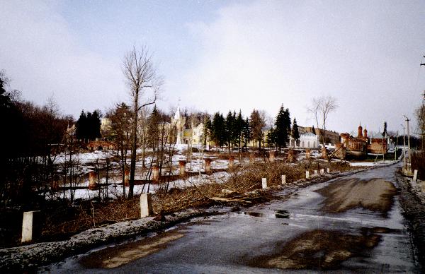 Если раньше заметить усадьбу с дороги было не так просто, то теперь при подъезде вырублены старые деревья, и вид на уникальный ансамбль открывается еще с моста через речку Кирицу. Памятник восстанавливается, и это чудесно...