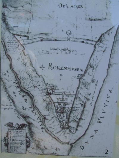 Когда-то замок был расположен на холме при слиянии рек Даугава и Персе. Двухэтажное здание (треугольное в плане) с пятью башнями занимало площадь 0,2 га. В западной части замка (при слиянии рек) было две башни, одна из них называлась “длинный Хеннинг” в честь архиепископа Хеннинга Шарпенберга (1528-1539), сделавшего крепость (в результате ремонта и перестроек) одной из самых неприступных в Ливонии.