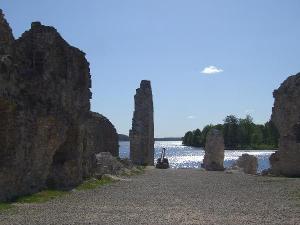 Сейчас часть замка с руинами двух сторожевых башен выглядит довольно романтично. Пушки остались со времен шведов (были подняты со дна Даугавы).