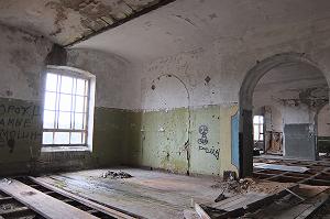 От п-образного здания общежития с мастерскими осталось не так много. Первый этаж был кирпичным, здесь размещались мастерские; второй ( с жилыми комнатами) был бревенчатым, обшитым тесом.