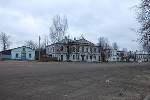 Центральная (бывшая Торговая) площадь города ограничена с восточной стороны комплексом старых административных построек: зданием уездных присутственных мест, тюремным и хозяйственными флигелями.