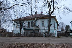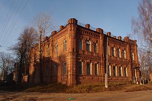 Еще один интересный купеческий особняк был выстроен Г.В.Макаровым в 1899 году на окраинном заболоченном участке, по проекту, как полагают, московского архитектора И.И.Рерберга. За домом располагались людская, конюшни, каретный сарай и парк. Макаров энергично пытался содействовать прокладке железной дороги через Кологрив и даже свой дом обещал отдать под железнодорожный вокзал. Но дорогу проложили южнее, через Мантурово, и остался дом единственным в своем роде вокзалом без железной дороги. Сейчас здесь музей.