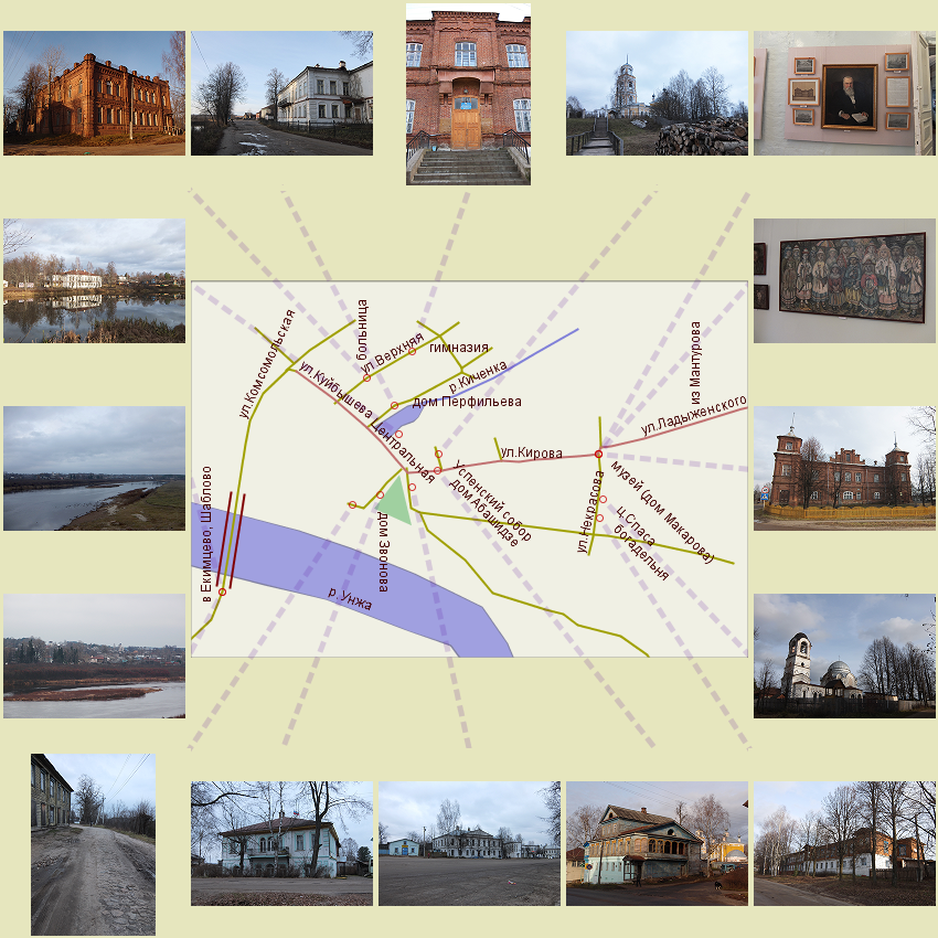 Об оживленном когда-то вятском тракте напоминает лишь старая мощеная часть набережной Унжи.