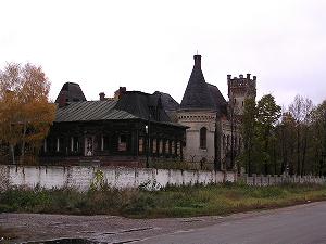 Рядом с дворцом, особнячок попроще, с деревянным резным вторым этажем. По свидетельству местных жителей, то ли дом для прислуги, то ли для технического персонала фабрики. Это здание тоде находится в процессе разрушения.