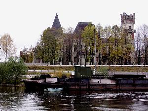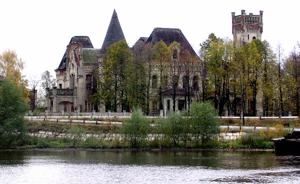 Ярославская область, Некрасовский район, поселок Красный Профинтерн. Название знакомое только узким специалистам по пищевой промышленности или любителям старинных разрушающихся особняков. Поселок с 1700 жителями жив и неплохо себя чувствует, хотя проблемы есть, особенно с электричеством (отключают). Крахмало-паточный комбинат "Ярпатока" функционирует, из труб вовсю валит дым, своеобразный запах окутывает округу. Все довольно банально, но вот необычный дворец на берегу Волги вызывает вопросы. Перед нами особняк Понизовкиных