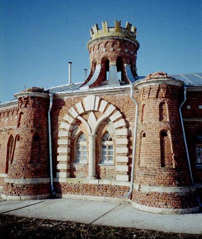 Перед встроенными в общий массив мощными башнями с зубчатым завершением поставлены две малые башни (когда-то тоже зубчатые), образующие ложные ворота.
