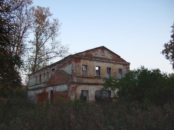 Главный дом усадьбы Кузьминское скрывается среди зелени. Когда-то он был добротен и вместителен. Ныне крыша утрачена, внутри здания подрастают молодые деревца.