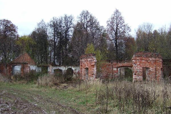 Вероятно, довольно интересным и необычным был и главный дом, стоящий на кромке парка, чуть в стороне от хозяйственных построек. Он сильно разрушен.