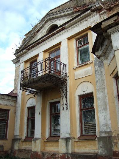 Основной объем здания украшен балкончиком с чугунной оградой, его поддерживает ныне лишь один кронштейн. Да и на крыше потихоньку прорастают деревья.