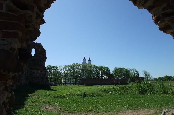 С замковой горы виден и католический собор на соседнем холме, возведенный на месте сгоревшей в XVIII веке церкви.