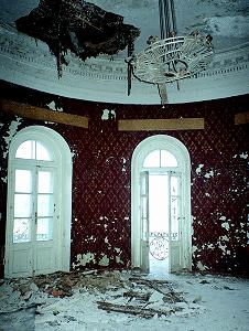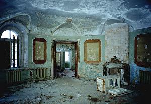 Кажется, еще недавно тут жили люди... Анфилады залов, уходящие вдаль... Выломанный камин, брошенный холодильник... Следы разных эпох.