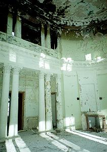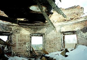 Дело в том, что главный купол старого дома пострадал от пожара, в резельтате снег и дождь потихоньку делают свое дело. Здание начинает постепенно разрушаться.