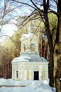 Вдоль дорожки к пруду стоят два парковых павильона XVIII века, в одном из них сейчас часовня. Остальные постройки усадьбы - более поздние.