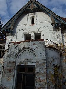 Но самое выдающееся строение - главный дом. Окруженный кустами, заброшенными клумбами и газоном. он, как дворец из сказки про спящую красавицу, заснул и чего-то ждет.