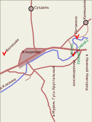 Владимирская область настолько богата известными памятниками истории и архитектуры, что на их фоне как-то теряются "неизвестные". Такой затерянной жемчужиной можно назвать усадьбу князей Грузинских - Михайловское. Места по берегам Клязьмы известны своей красотой. Здесь, на правом берегу реки, между деревнями Краснораменье и Спас-Купалище и была усадьба Михайловское. В Спас-Купалище до сих пор сохранилось родовое захоронение князей Грузинских. Михайловское же было дано в приданое дочери участника войны 1812 года, князя Грузинского - Марии Михайловне, при которой и был выстроен замечательный усадебный ансамбль. Строительство началось после 1879 года по проекту петербургского архитектора Е.А.Сабанеева, решившего построить на высоком берегу реки образцовый усадебный комплекс по последнему слову моды и техники. Кроме главного дома, занявшего самое выигрышное место, по берегу были живописно разбросаны многочисленные жилые и хозяйственные постройки ( скотный двор, конюшня, дом для прислуги,кухня, оранжерея, каретный сарай, прачечная, дома для рабочих, насосная станция, часовня). Все постройки объединял единый неоготический стиль ( с преобладанием черт стиля Тюдор), хотя были использованы и черты распространенных тогда стилизованных "швейцарских шале". Главный дом получился красивым и оригинальным за счет свободной компоновки разновысотных объемов, гармоничного декора, боковой башни со шпилем. Кроме того, при постройке были применены последние технические достижения. В доме был проведен водопровод. Из насосной станции вода подавалась в огромный резервуар, находящийся на самом верху остроконечной башни, откуда по трубам вода бежала на второй и первый этажи. И сейчас в некоторых внутренних стенах дома встречаются небольшие ниши-чаши с выходяшим из стен старыми водопроводными трубами. Очень удобна планировка дома, удачно расположены лесенки, балконы, окна. Словом, пока еще можно представить, как тут было уютно когда-то. Красоту этих мест высоко оценил Петр Ильич Чайковский, гостивший в Михайловском в сентябре 1893 года. В этом году здесь на лето снял дачу родной брат композитора Анатолий Ильич, служивший в то время вице-губернатором в Нижнем Новгороде, (где князья Грузинские также владели земельными угодьями). Летний отдых вице-губернатора удался, он настоятельно звал в гости брата: "Я здесь с 4 июля... Право, кажется, лучшей резиденции для лета нет. В полном смысле я наслаждаюсь. Чудная Клязьма, лес, самый домик наш уютен и мил благодаря цветам и зелени, в которой он утопает…». Петру Ильичу удалось приехать только в начале осени, 10 сентября он отправил письмо брату Модесту:«Невозможно описать, до чего здесь хорошо... Я никак не ожидал попасть в подобие рая! Семья Грузинских очень симпатичная... В довершении всего эта удивительная, божественная погода! Я весь день брожу по лесам и грибов приношу немало…». Уже уехав из Михайловского П.И.Чайковский писал: «О пребывании в Михайловском вспоминаю с наслаждением». Однако местная идиллия уже не так привлекала хозяев.После смерти М.М. Грузинской, ее муж Трегубов продал усадьбу купцу Шорыгину, а после революции и национализации здесь разместился санаторий. До 1990-х годов в усадебных постройках функционировал детский санаторий им. В.И.Ленина. Даже поселок при нем назывался "имени Ленина" (да и ныне т