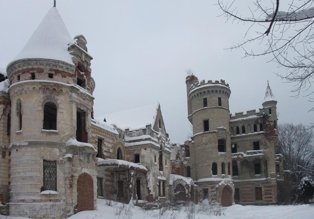 Первоначально главный дом был двухэтажным. В 1906 году было пристроено правое крыло с высокой башней. Готическая тема основного дома, получившая продолжение в этой пристройке, органично соседствует с элементами модерна. В замке были все удобства: водопровод, канализация, телефон.