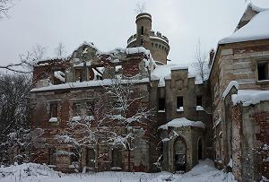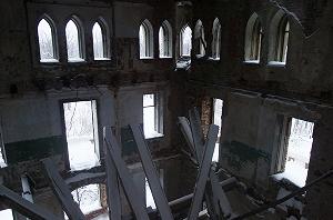 Местами можно различить элементы отделки стен.Но нет ни паркетных полов, ни декоративных росписей художника августа Томашки, ни коллекции картин, ни знаменитой зеркальной комнаты. Все в прошлом.