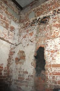 Деревянные перекрытия рухнули, кое-где остались новые - советских времен. В остальном внутренняя планировка сохранилась неплохо. Но о богатстве прежнего убранства говорить не приходится