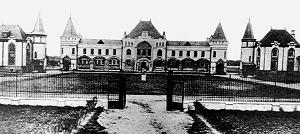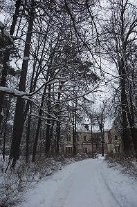 Чуть в сороне от главного дома расположены бывшие конюшни В.Храповицкого. Некоторое время назад здесь вроде бы располагалось общежитие, в котором случился пожар, здание забросили.