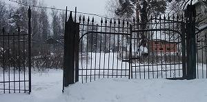 Частично уцелела старая ограда со стороны каретных сараев. В ее оформлении использованы стилизованные пики и алебарды.