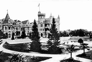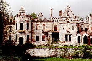 По преданию, Владимир Храповицкий, путешествуя по Франции в 1880-е годы, был в восторге от средневековых замков. На замечание французов, что в России ничего подобного нет, Храповицкий нашел своеобразный ответ: он заключил пари, что построит замок. Пригласив через несколько лет французских друзей в свое имение, хозяин продемонстрировал удивленным гостям не просто замок, а "готический" дворец с парком и каскадом прудов у главного дома. Так возник этот великолепный ансамбль, поражающий и поныне своим размахом и удивительной свободой пространственного решения. Не поворачивается язык назвать это "эклектикой" (хотя этот термин прочно укоренился применительно к постойкам данной эпохи). Изощренность