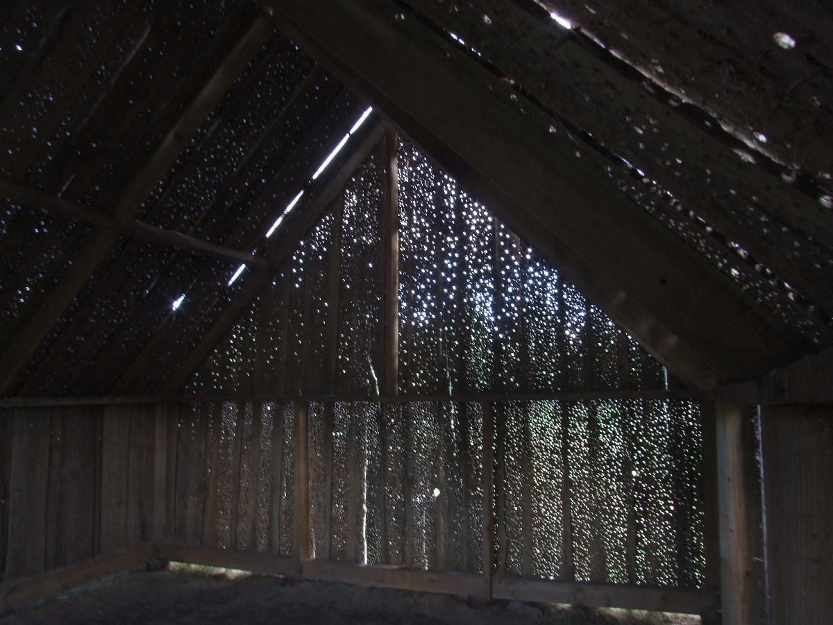 Что касается интерьеров, то ничто не сравнится с "Сараем", созданным архитектурным бюро "Проект Меганом". Эффект создается множеством ответстий (на 1 кв. метр - 600 дырок по 1 см диаметром и 700 - по 7 мм).
