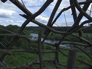 Один из самых известных объектов на берегу Угры - "Николино ухо", деревянное сооружение высотой 6-8 метров (проектная группа Савинкин/Кузьмин).
