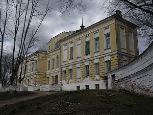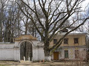 Сами флигели, типичные двухэтажные, квадратные в плане, постройки, сильно выигрывают от соседства симпатичных ворот и вековых деревьев.