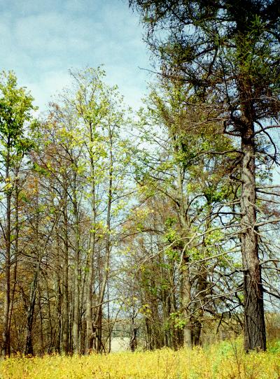 Прямо от дома уходит аллея старых деревьев, вокруг - заросли спиреи. Вероятно, здесь был парадный подъезд к дому.