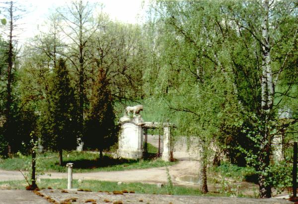 Красивая сквозная решетка, ограничивающая парадный двор, частично утрачена. Сохранились белокаменные столбы главных ворот, завершенные по традиции фигурами львов (сейчас лев остался один).