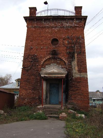 Исключение составляет построеная одновременно с главным домом (в 1900-1910-х гг.) водокачка, украшенная неокласическим ордерным декором в нижней части. Раньше портик подпирали белые колонны, а не красные трубы.
