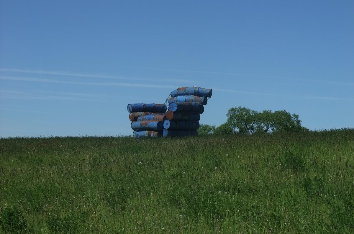 Villu Jaanisoo является автором еще одного объекта в Педвале, созданного из огромных железных бочек. "Кресло", "Стул", "Председатель" - у инсталяции несколько названий, впервые подобное творение этого скульптора можно было увидеть в Таллинне на выставке в 2001 году.