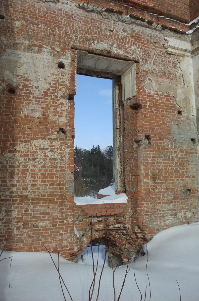 В некоторых местах до сих пор уцелела отделка оконных проемов. Дом отапливался красивыми высокими изразцовыми печами с монохромным рисунком по белому полю.