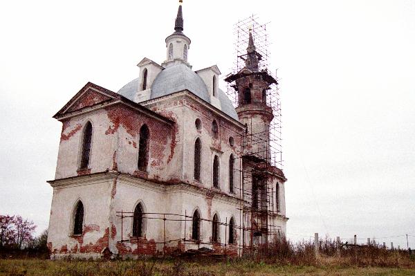 Какие-то неуловимые черты связывают поджигородовскую церковь с баженовским храмом в Быкове. Несмотря на отсутствие декора и "прямоугольность" плана (даже алтарная часть является прямоугольной)