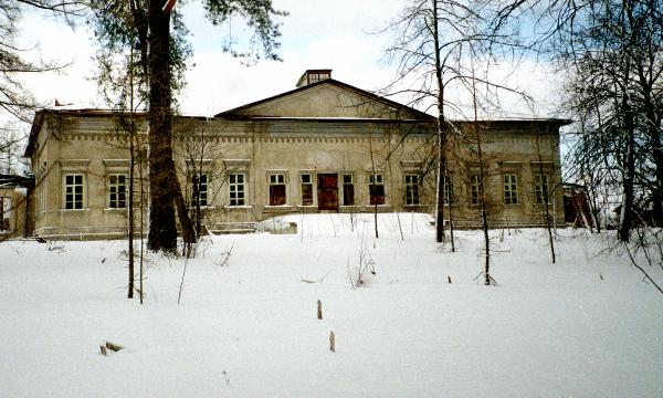 Южным фасадом дом выходит в парк, спускающийся по склону к прудам. С этой стороны, строение пока выглядит не лучшим образом.