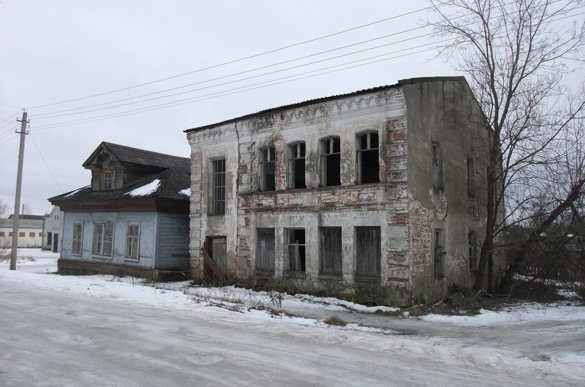 По соседству с ним доживает свой век выстроенный в те же годы двухэтажный каменный дом с большим витражным окном лестничной клетки. Дом украшен рустованными лопатками и карнизом с мелкими арочками на ступенчатых консолях.