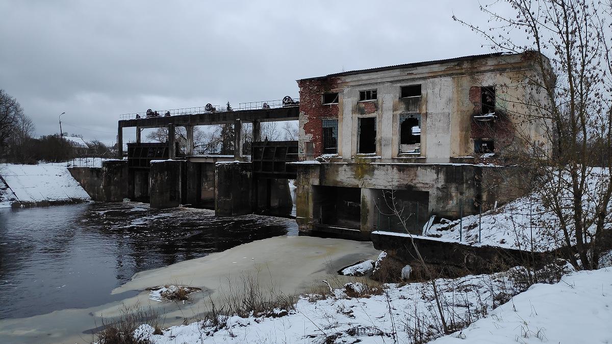 Завернув за каланчу, продолжим наш путь правым (по ходу - левым) берегом реки. Эта дорога ведёт в Холомки и Бельское устье (по ней можно попасть и на старое Порховское городище). В том месте, где дорога отворачивает от берега, находится весьма примечательное сооружение - бывшая Порховская гидроэлектростанция. Для древнего порубежного городка новгородской земли тема преграды или заслона не нова, но здесь, в отличие от гармонично вписанной в ландшафт крепости, тема трансформируется в нечто прямоугольно-циклопическое и весьма контрастное по отношению к спокойным и мягким очертаниям речной долины.