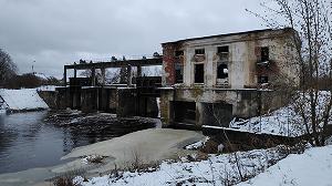 Завернув за каланчу, продолжим наш путь правым (по ходу - левым) берегом реки. Эта дорога ведёт в Холомки и Бельское устье (по ней можно попасть и на старое Порховское городище). В том месте, где дорога отворачивает от берега, находится весьма примечательное сооружение - бывшая Порховская гидроэлектростанция. Для древнего порубежного городка новгородской земли тема преграды или заслона не нова, но здесь, в отличие от гармонично вписанной в ландшафт крепости, тема трансформируется в нечто прямоугольно-циклопическое и весьма контрастное по отношению к спокойным и мягким очертаниям речной долины.