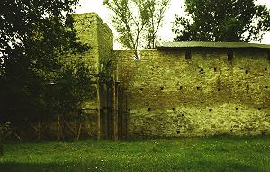 Закругление "речной" стены, одна из наиболее живописных особенностей порховской крепости. Хотя с оборонительной точки зрения, может быть, и не самая удачная.