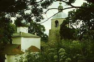 И, конечно, стоит напомнить, что крепость - не единственная древняя постройка Порхова. На другом берегу, почти напротив старого городища, возвышается церковь Рождества Богородицы, построенная не позднее XV века, а, скорее всего, раньше. Храм, вероятно, монастырский, сложенный из камней разного размера, не избежал потерь и переделок, но странным образом сохранил особое благородство старого новгородского зодчества. К сожалению, Никольский храм в крепости такого впечатления не производит, поскольку в XVIII веке был отстроен заново. И, хотя он возведён на древнем фундаменте и в общих чертах повторяет формы старого собора, восьмигранный барабан совершенно разрушает цельность впечатления.
