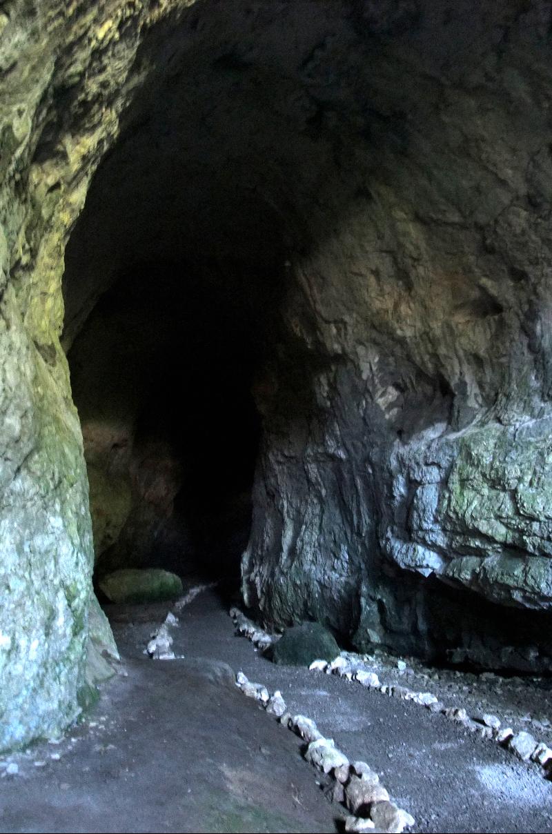 Вначале это высокий проход с выложенной для туристов дорожкой. Здесь обнаружены следы присутствия человека каменного века. В средние века в этом гроте держали лошадей.