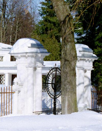 По сведениям А.Б.Чижкова, до недавнего времени сохранялась ограда парадного двора с металлической решеткой и воротами. В результате реставрации остались чугунными лишь ворота, решетка ограды заменена на деревянный штакетник.