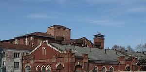 Напротив фабричных корпусов - жилые помещения для рабочих (казармы). Сейчас это отремонтированное с мансардной надстройкой приятное жилье.