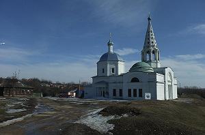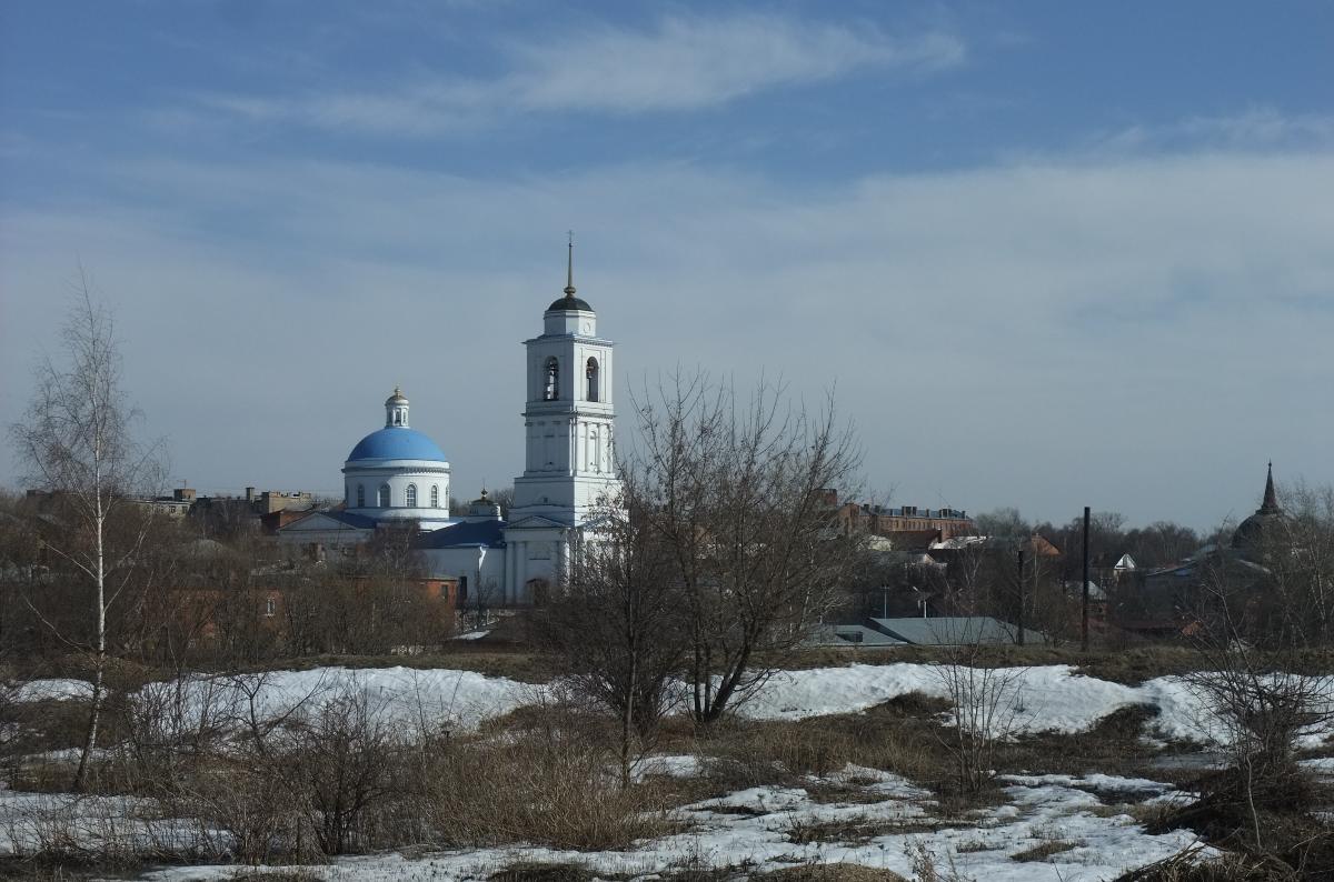 Храм Николы Белого, возведенный в 1835-1857 в стиле классицизма, как-то великоват для окружающей застройки и резко контрастирует с одноэтажными деревянными домиками на Калужской улице.