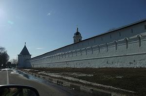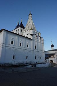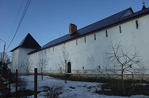 Монастырь основан в 1360 Московским митрополитом Алексием. Крепостные стены монастыря сооружены в конце XVI - начале XVII веков. Четыре квадратные угловые башни украшены лопатками и чередованием бойниц.