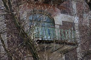 Северный фасад дома украшают огромные балконы. Один из них остался незастекленным и позволяет разглядеть металлическую решетку ограды и, в какой-то мере, восстановить в воображении первоначальный замысел архитектора.