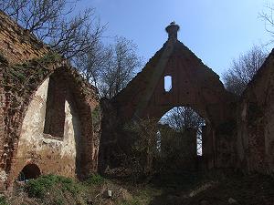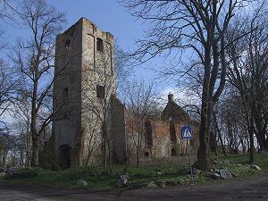 Неподалеку от замка, дальше по дороге, стоит полуразрушенная кирха, построенная в третьей четверти XIV века.