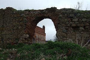 Это та часть, где были средневековые въездные вотота, позднее заложенные. Перед ними когда-то был подвесной мост. Вероятно тогда вокруг был ров, от которого осталась пара прудов.
